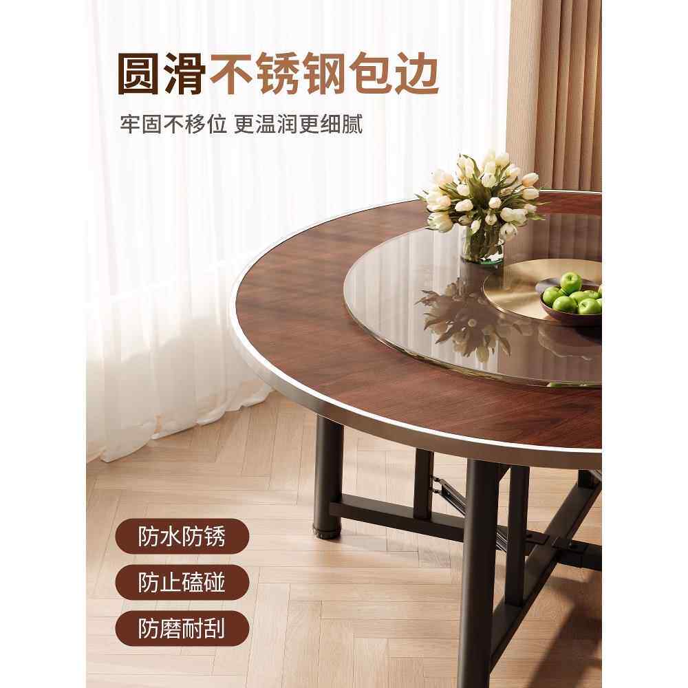 可折叠圆形餐桌加厚桌面家用10人吃饭桌子小户型加旋转圆盘大圆桌