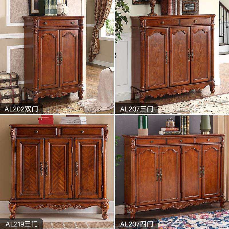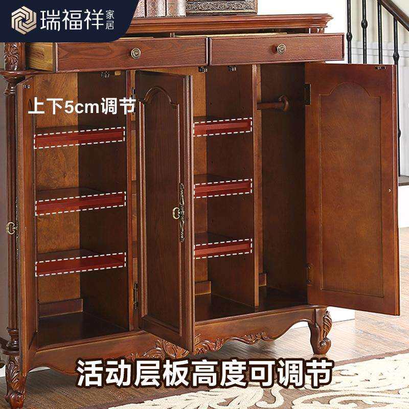 柜三门家用门口大容量收纳柜欧式 多层玄关柜 实木鞋 瑞福祥美式由