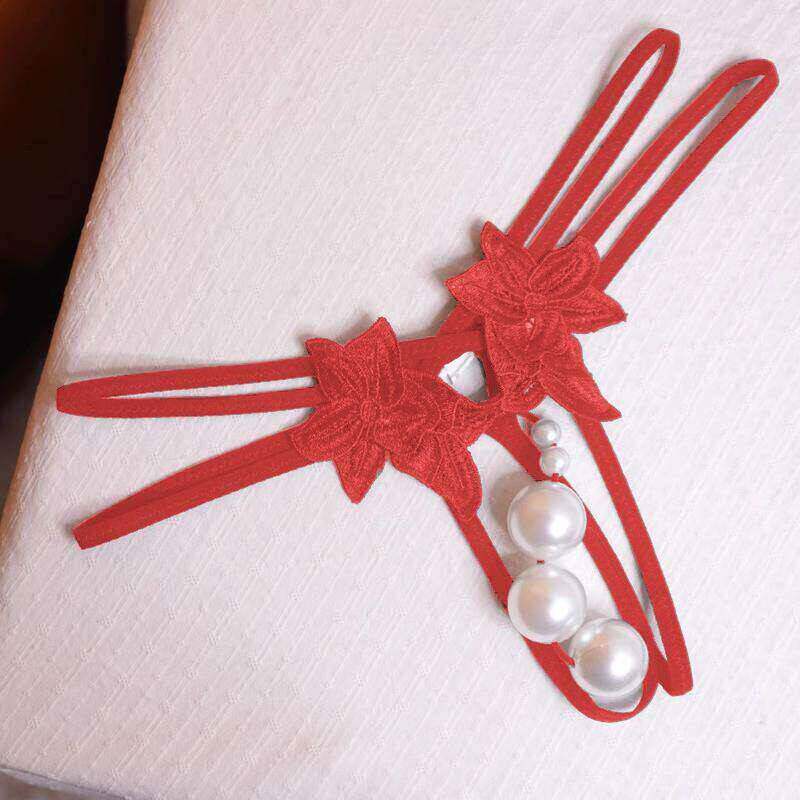 蕾丝情调刺激珍珠丁字裤 女内透明房事免穿脱 纯欲大码 性感勾人内裤由
