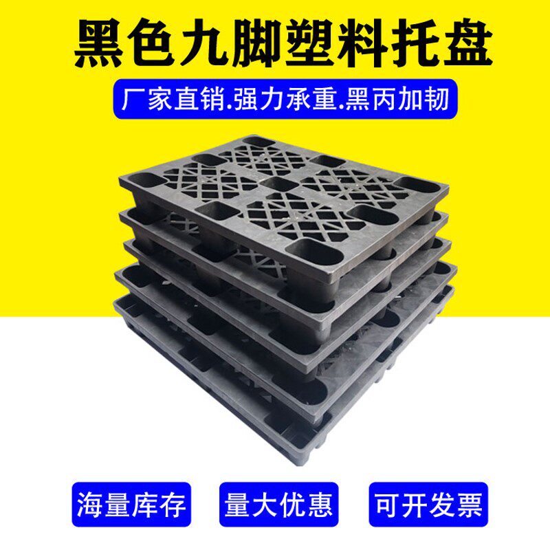 黑色九脚塑料叉车托盘卡板胶卡板货物栈板垫仓板地脚Y防潮板垫板由
