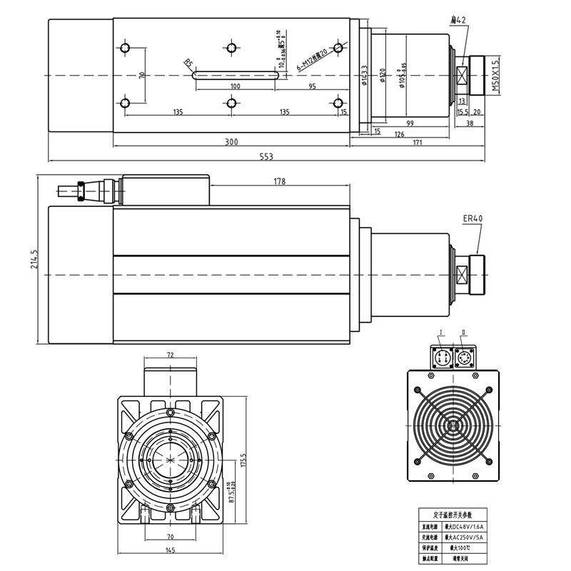 13.5 大功率ER40螺母电机机 18Z HQD13.5kw方形风冷主轴翰琪GDF87由