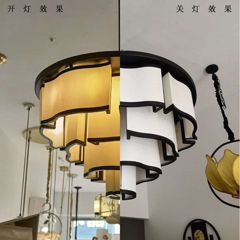 祥云包间宴会厅酒店简约创意餐饮国潮铁艺布艺工程吸顶吊灯 新中式