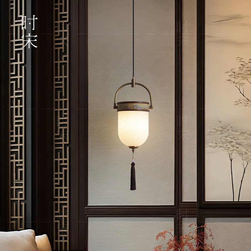 吊灯民宿原木风卧室装 饰床头灯吧台过道玄关灯 宋代美学新中式 新款