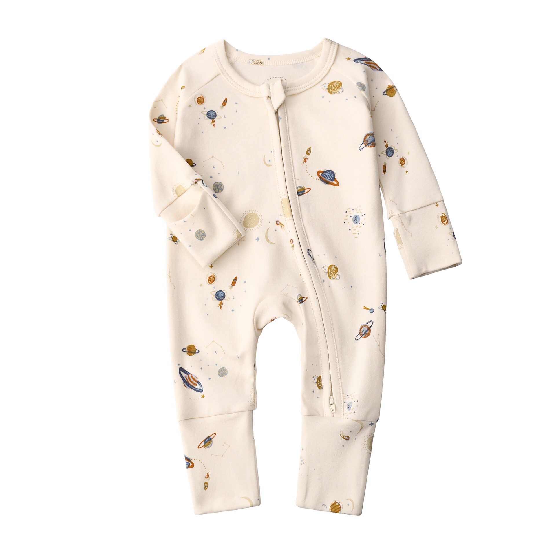 婴儿拉链连体衣包手纯棉a类宝宝包脚爬服防抓脸衣服ins风 2026新款