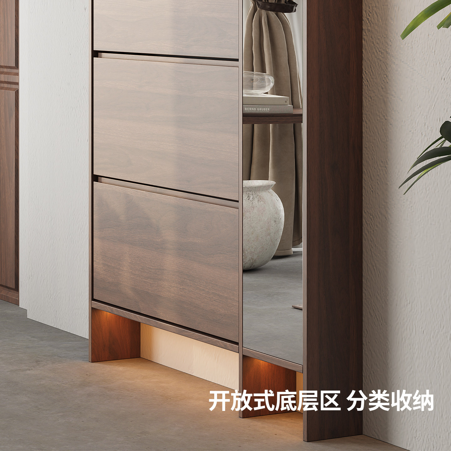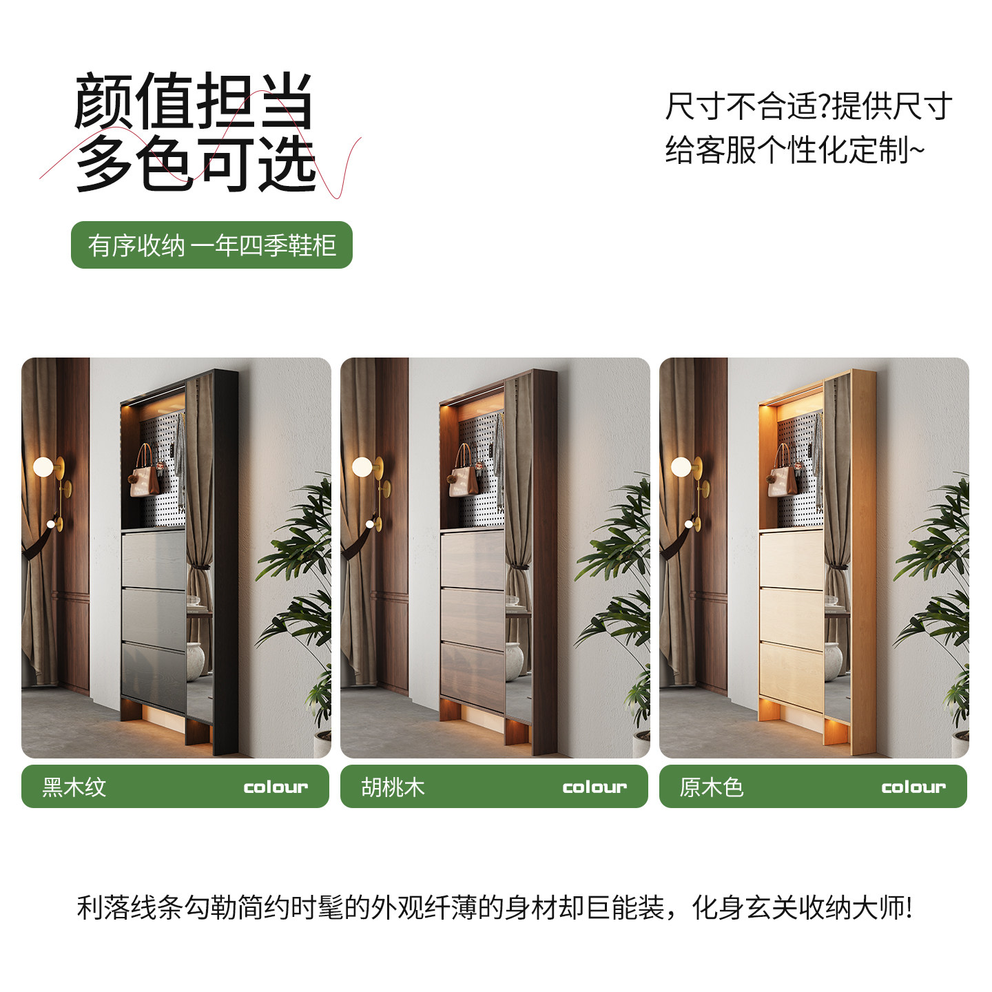 为您提供商品柜一体胡桃木色过道柜 定制15CM超窄中古风实木翻门全身镜翻斗鞋的详细介绍,