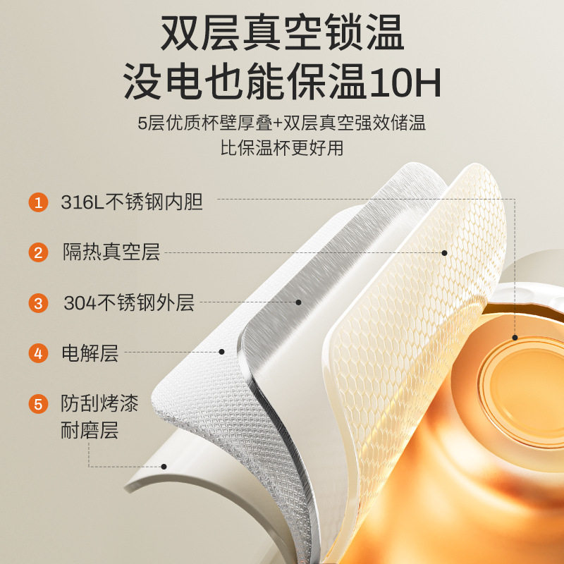 摩动充电恒温水杯户外烧水保温杯婴儿无线泡奶冲奶神器调奶器