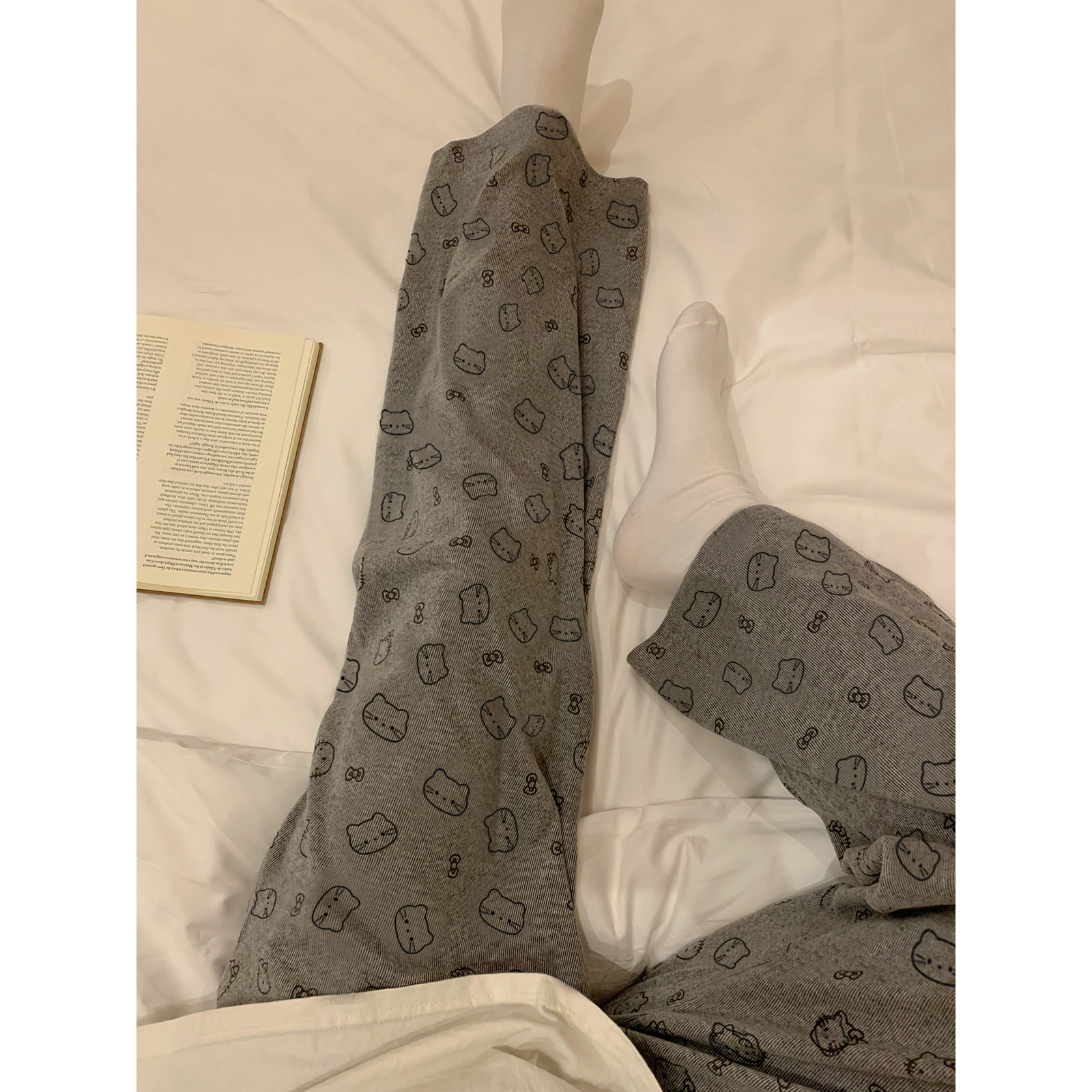 女秋冬休闲垂感宽松直筒家居裤 子 可爱卡通猫睡裤 馨帮帮Homedress由