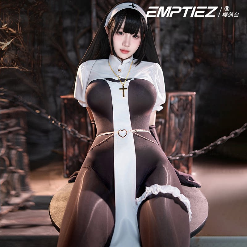 内衣 樱蒲台cosplay性感暗夜修女服黑丝紧身油亮连体衣cos制服套装