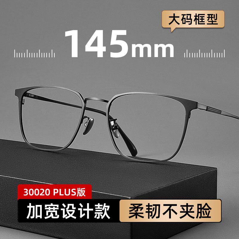 近视可配有度数大框大头眼睛架防蓝光 商务超轻纯钛大脸眼镜框男款