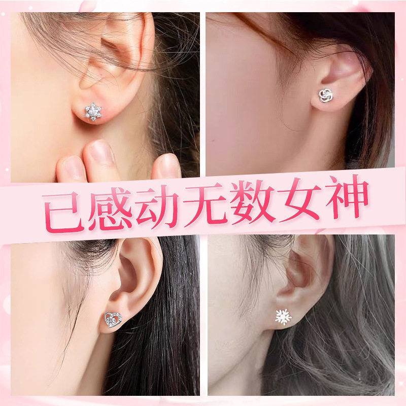 999纯银耳钉女养耳洞耳骨钉小众高级感锆石耳蜗钉水钻耳环银耳饰