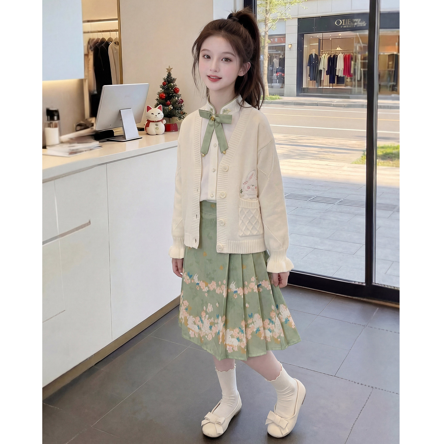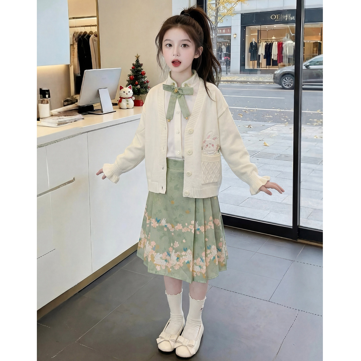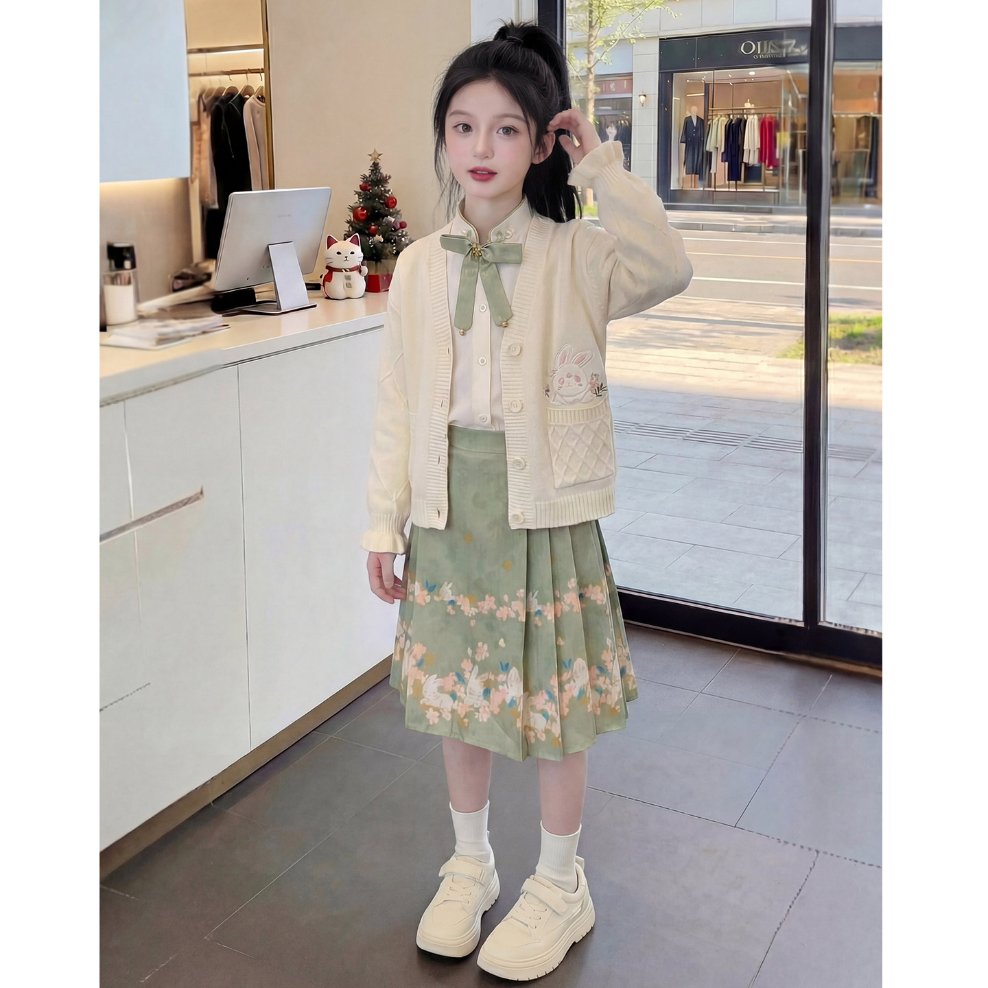 为您提供商品女童春装 2026新款 儿童洋气汉服国风中式 马面裙女孩春秋三件套 套装的详细介绍,