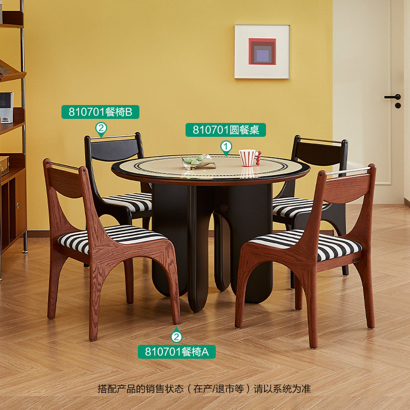 全友家居门店同款 方寸系列 810701 钢化玻璃圆形餐桌餐椅 复古风