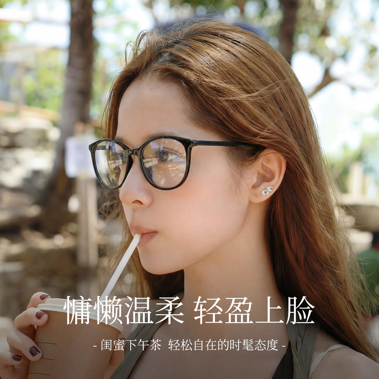 超轻眼镜女可配近视度数冷茶色素颜神器大框显脸小眼睛方圆脸镜架