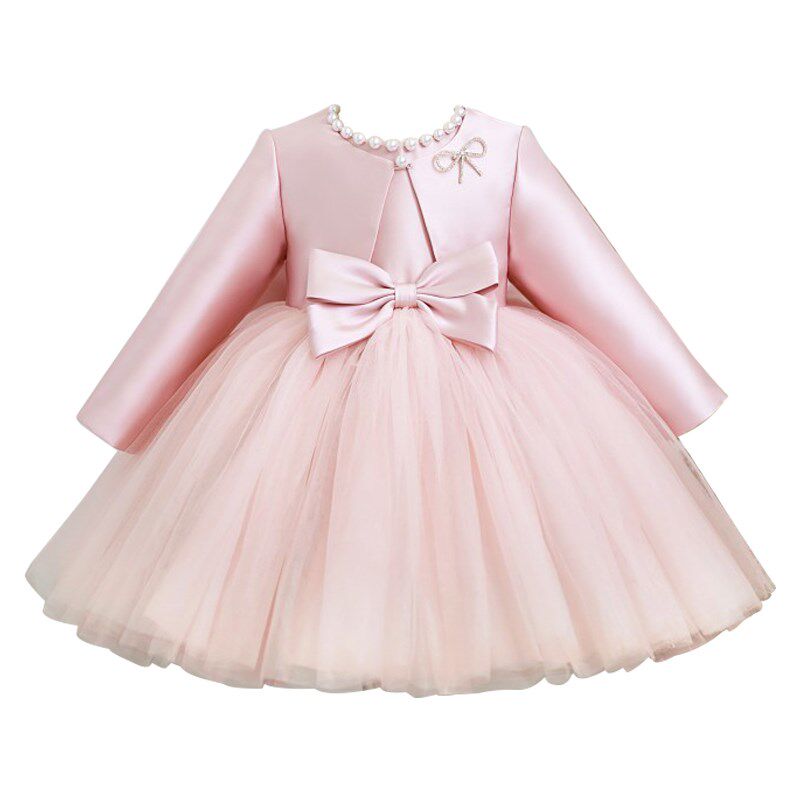 女宝宝周岁抓周礼服2026新款 春夏白色花童礼服洋气蓬蓬公主裙长袖