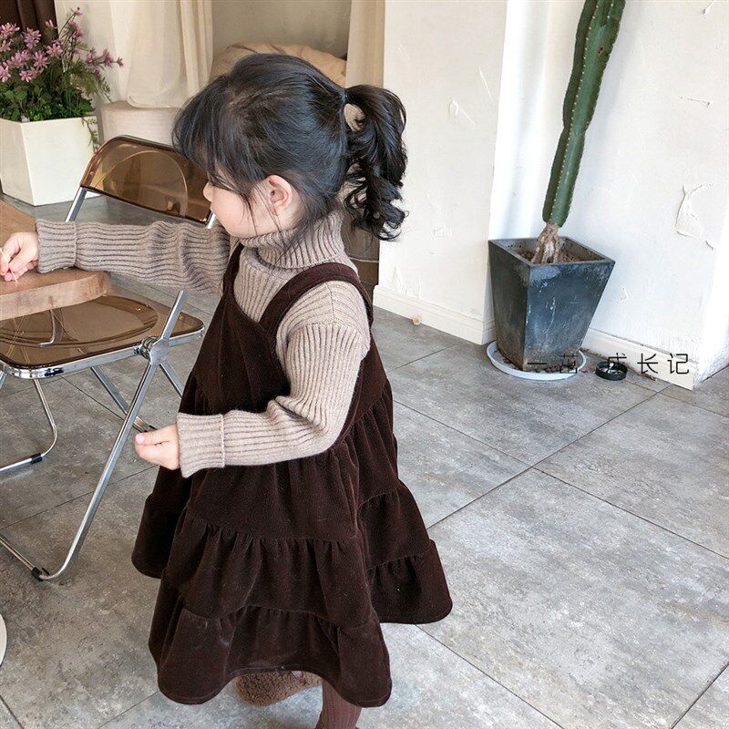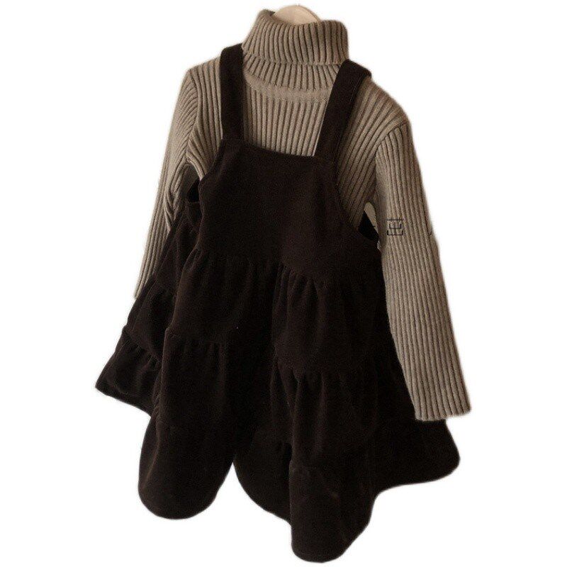 2022秋冬复古高领毛衣灯芯绒背带裙两件套女孩气质连衣裙 女童套装由