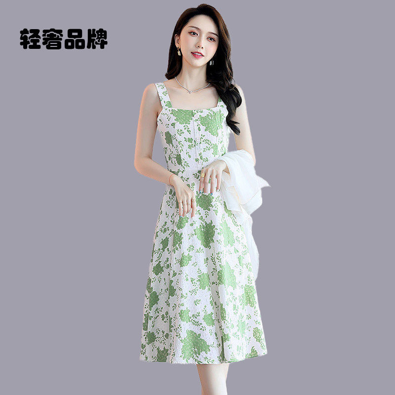 pusumede 碎花连衣裙女小众收腰显瘦气质裙子 高级感v领吊带裙长款