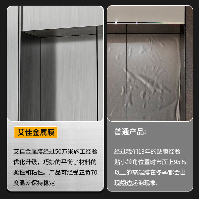 金属膜贴纸家具翻新自粘防水高级感拉丝电梯冰箱遮丑金色不锈钢膜由