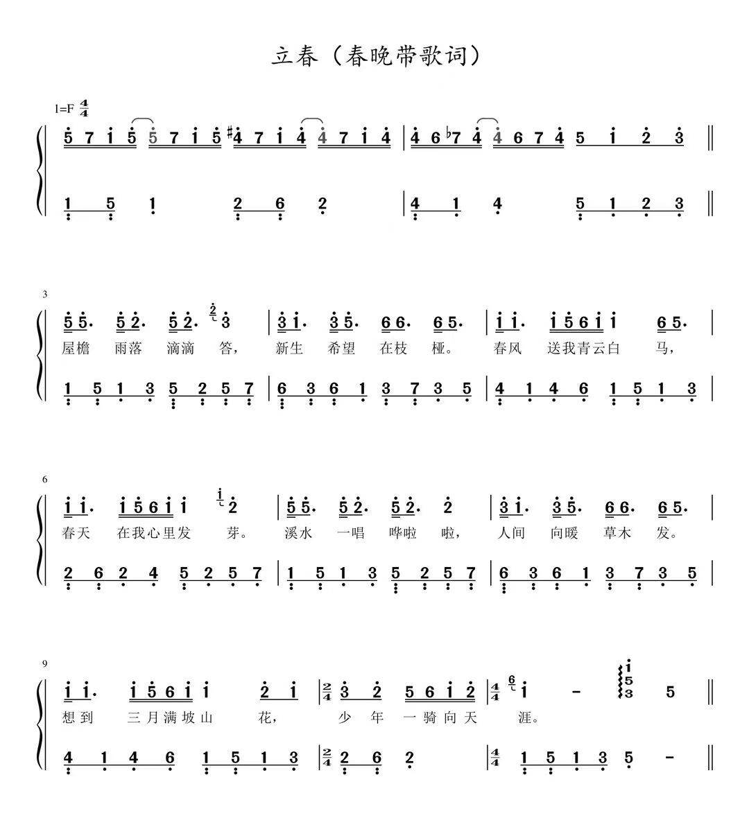 简谱版 立春 可转调 五线谱 高清电子谱 2026春晚歌曲 钢琴独奏谱由