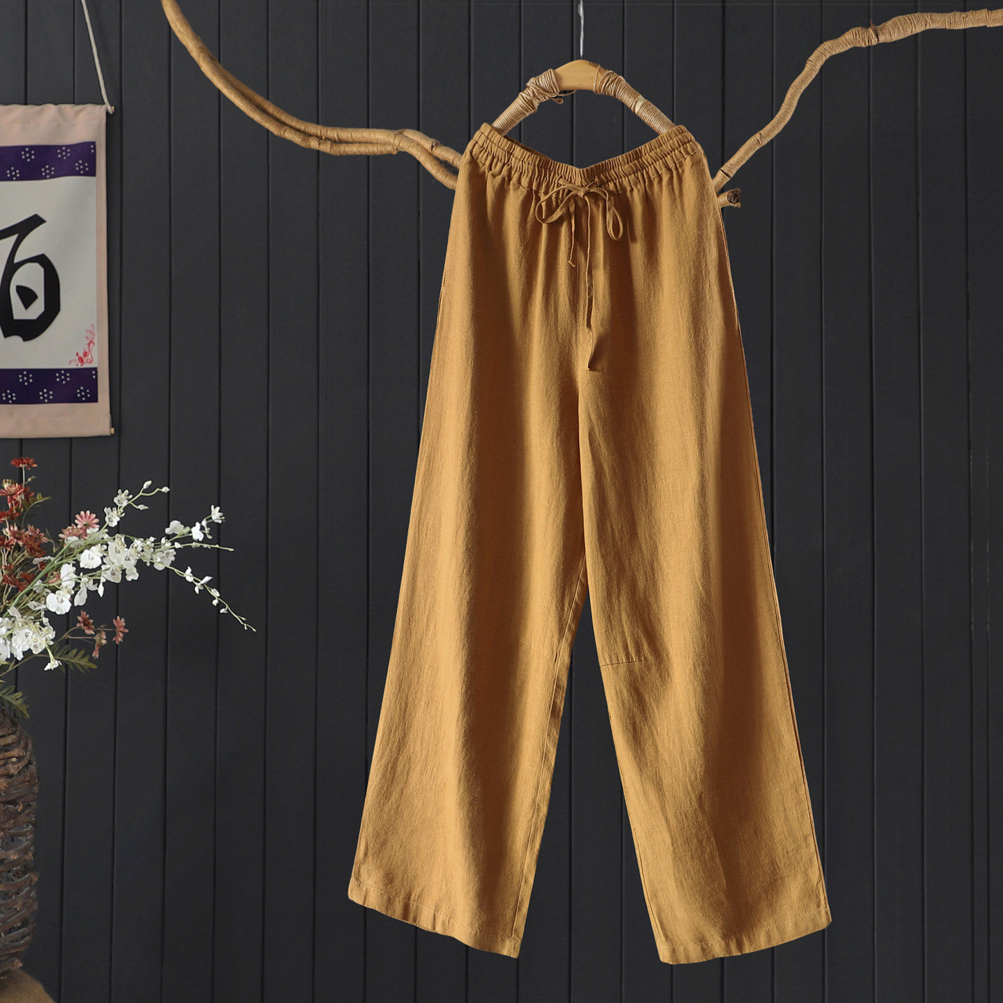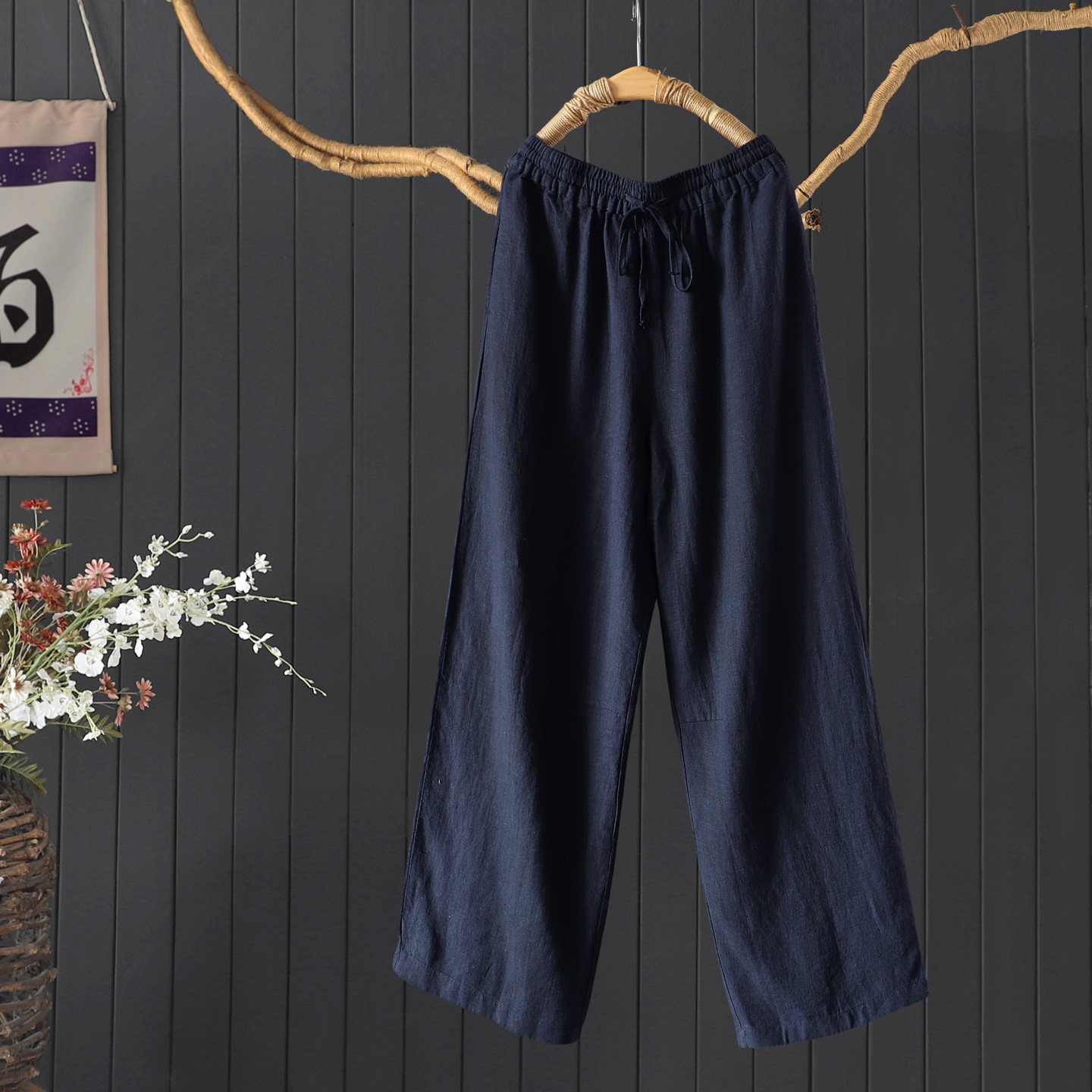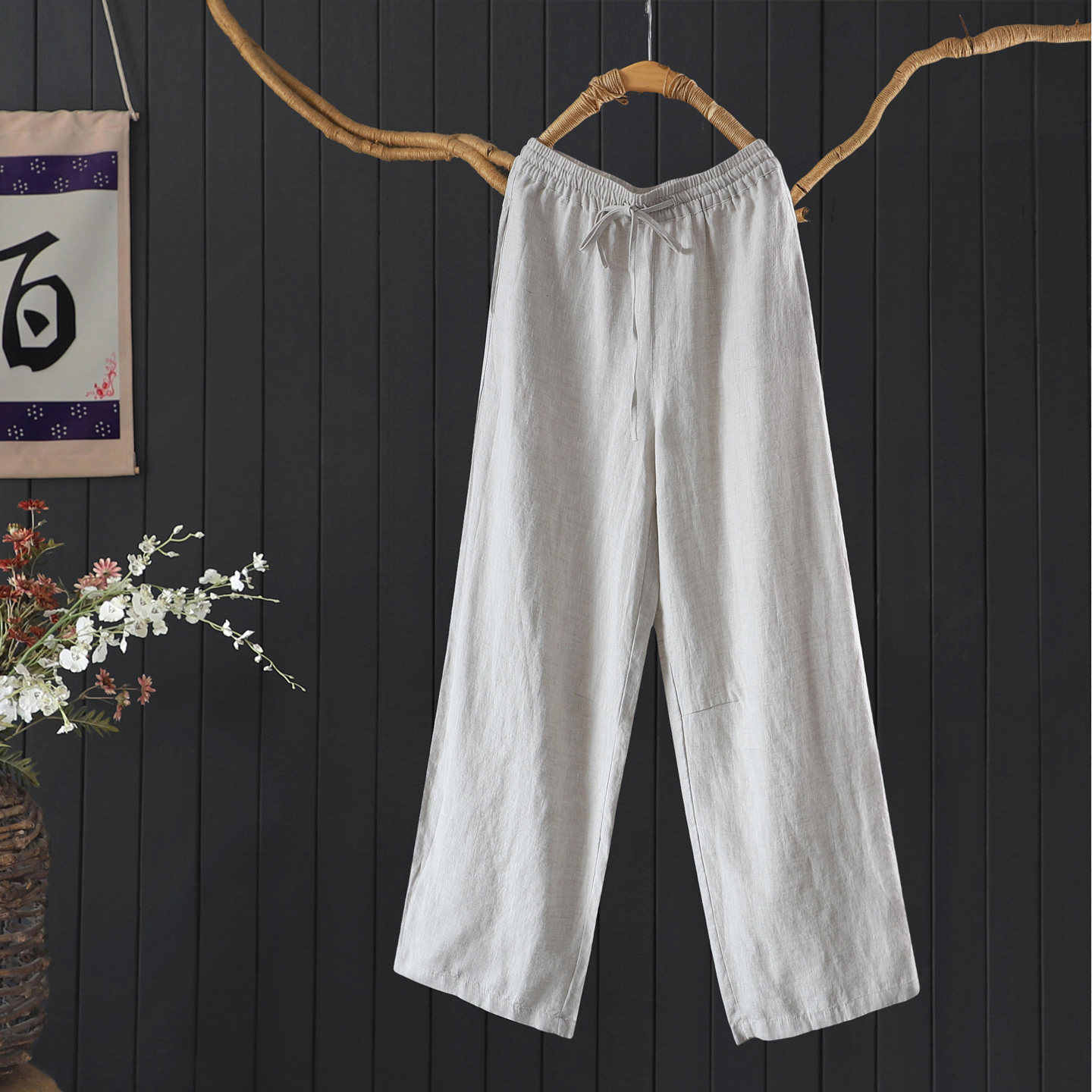 弯刀裤 春夏季 100%汉麻长裤 女文艺素雅加长款 宽松显瘦直筒裤 禅茶裤由