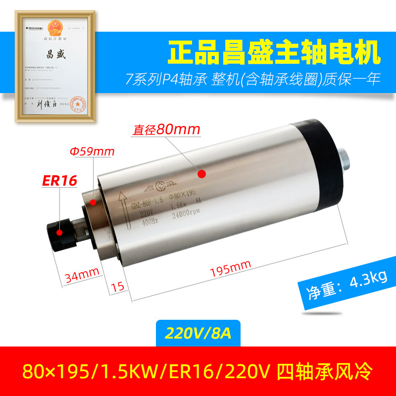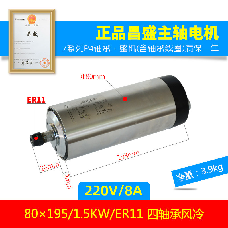 昌盛雕刻机风冷主轴电机65直径0.8KW 220水冷主轴雕花机高速 800W由