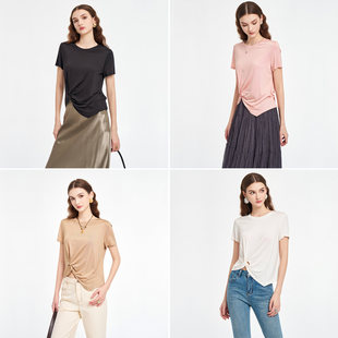 为您提供商品2026新款 天丝混纺百搭显瘦上衣EZ2C131 t恤女圆领纯色打底衫 短袖的详细介绍,