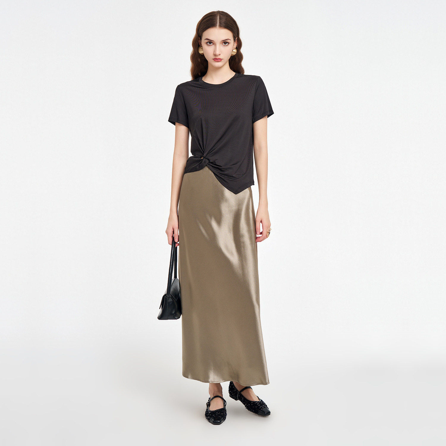 2026新款 天丝混纺百搭显瘦上衣EZ2C131 t恤女圆领纯色打底衫 短袖由
