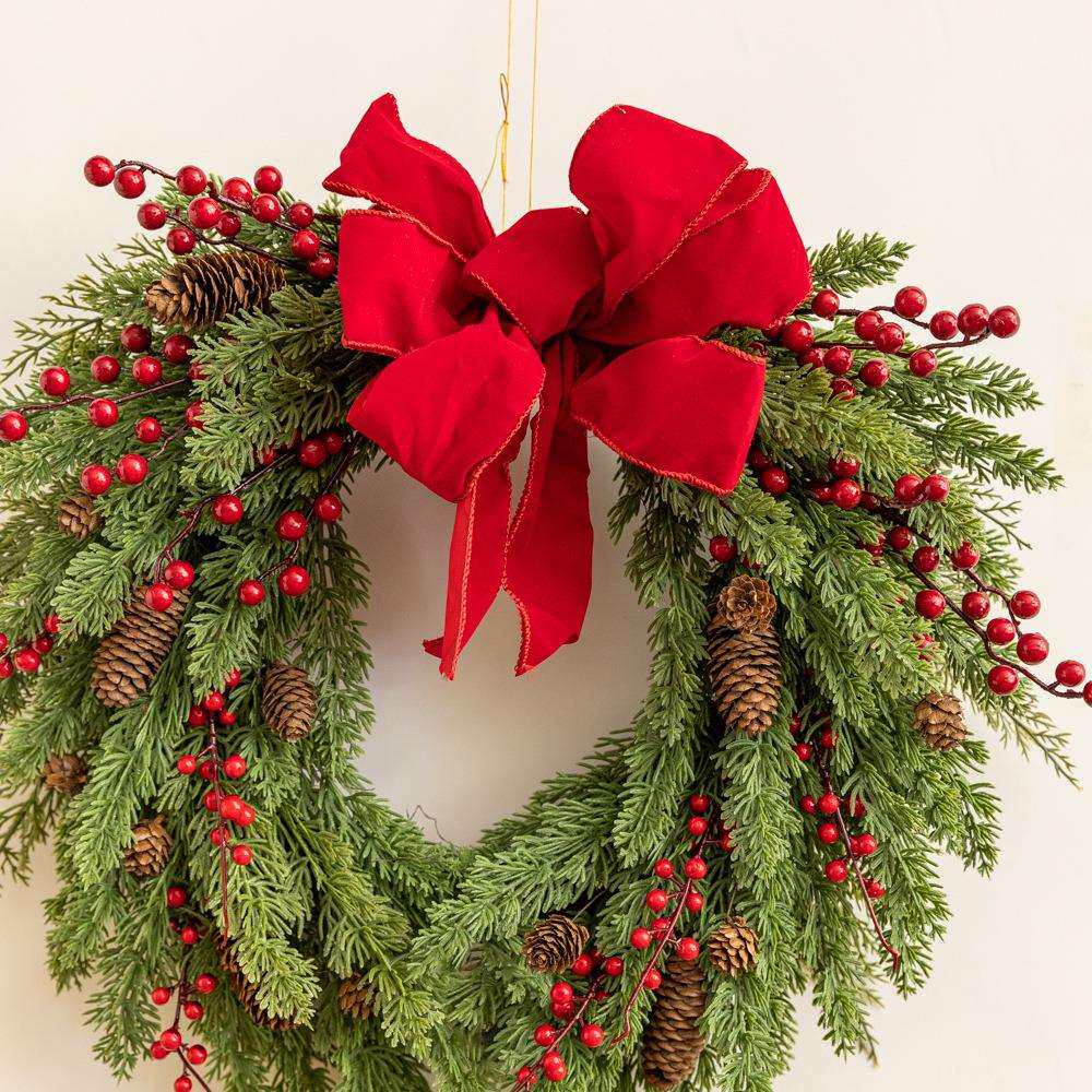 Temu圣诞节50CM花环浆果蝴蝶结前门门挂家居装 饰品 跨境新品 美美由