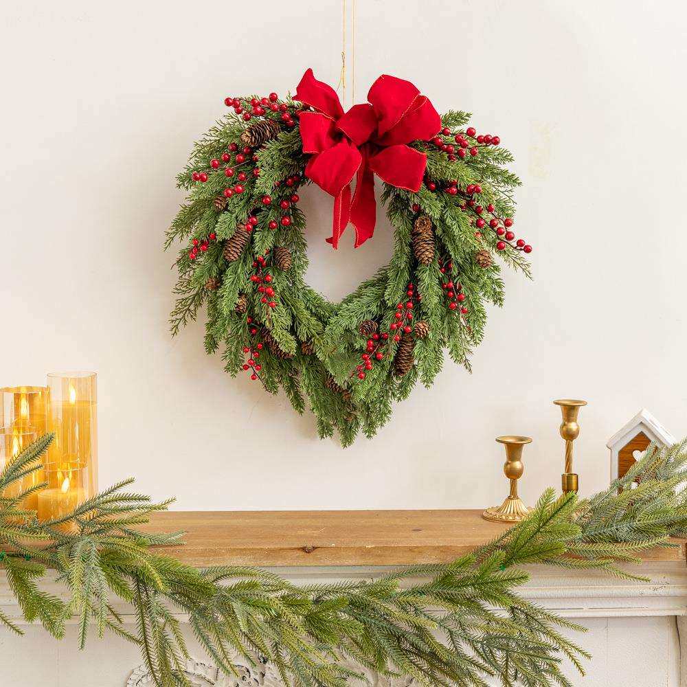 Temu圣诞节50CM花环浆果蝴蝶结前门门挂家居装 饰品 跨境新品 美美