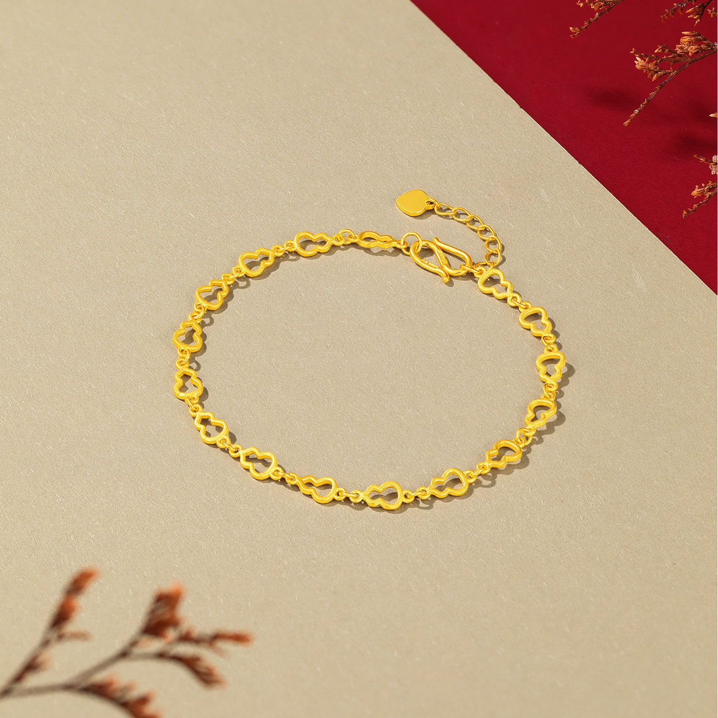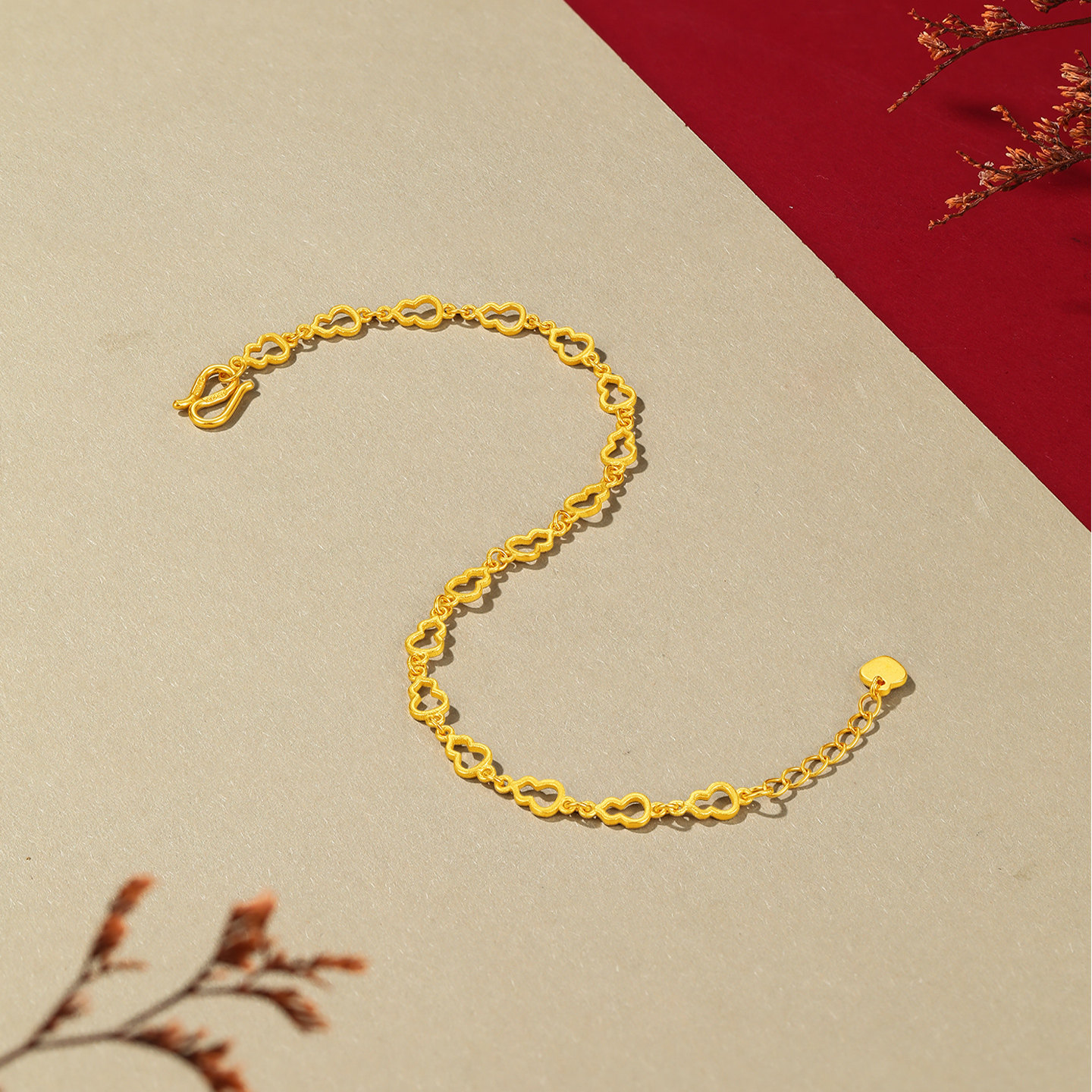 生日礼物 赛菲尔黄金手链葫芦福禄连连足金镂空葫芦首饰可调节女款