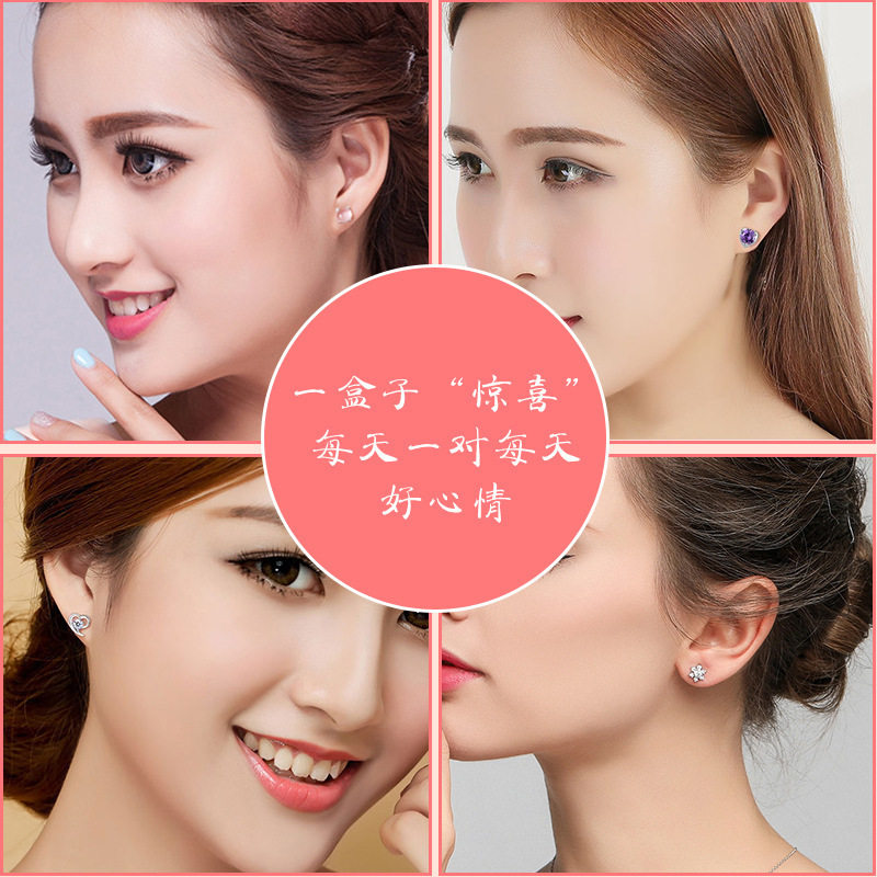 感轻奢气质百搭耳饰耳坠生日礼物送女生 925银针一周耳钉套装
