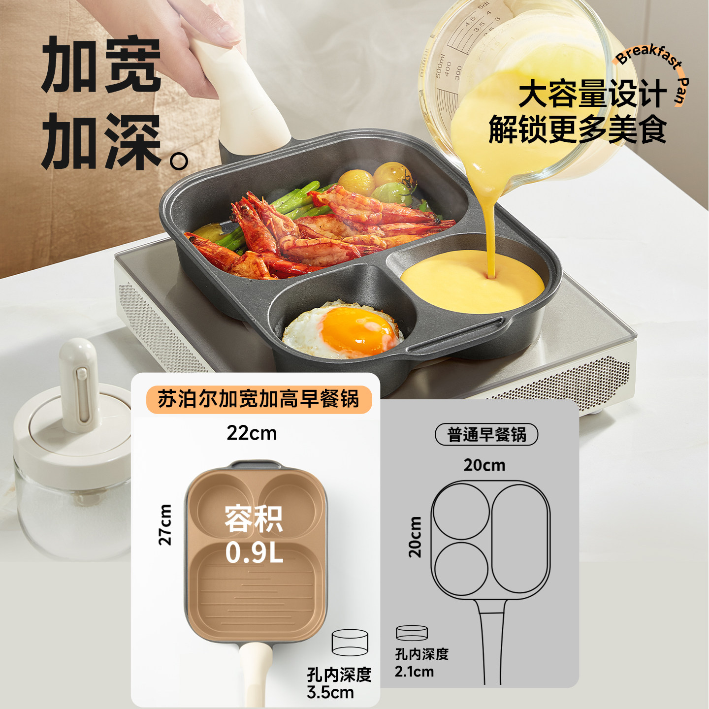为您提供商品苏泊尔三合一早餐锅钛不粘家用四孔煎锅煎蛋锅鸡蛋汉堡锅煎蛋神器的详细介绍,