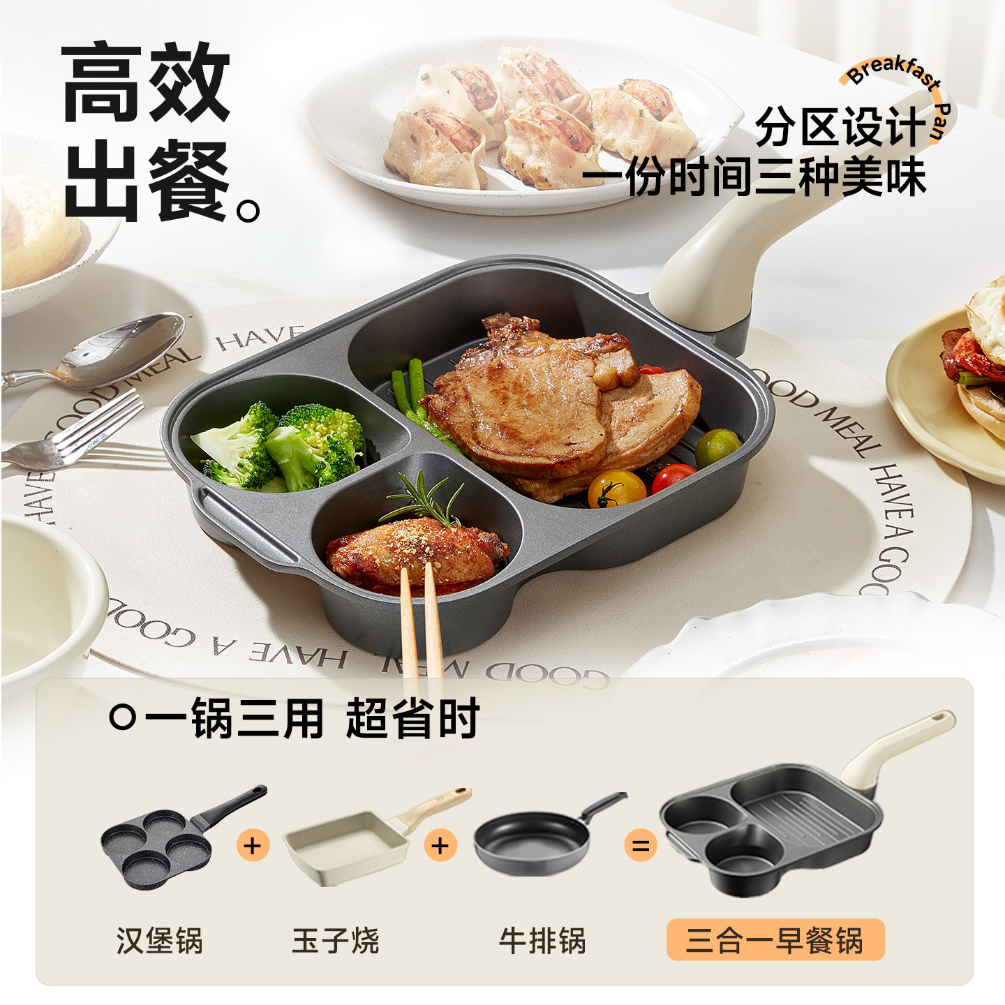 苏泊尔三合一早餐锅钛不粘家用四孔煎锅煎蛋锅鸡蛋汉堡锅煎蛋神器