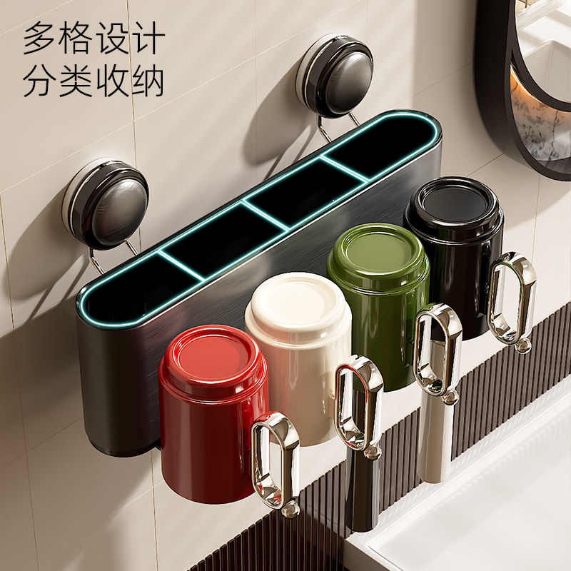 牙膏牙具收纳卫生间免打孔漱口杯挂架 不锈钢吸盘牙刷置物架壁挂式