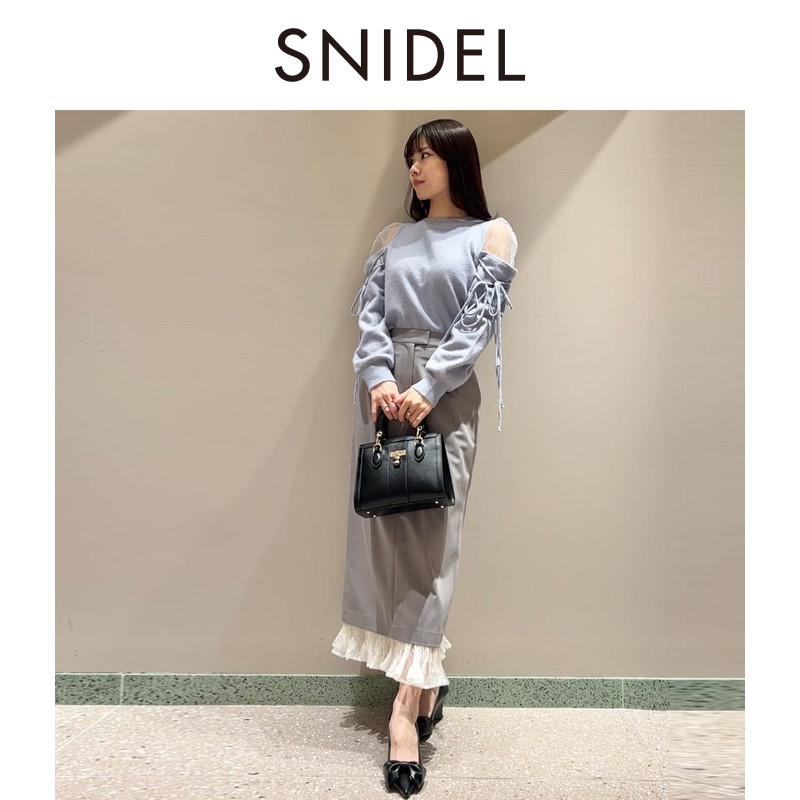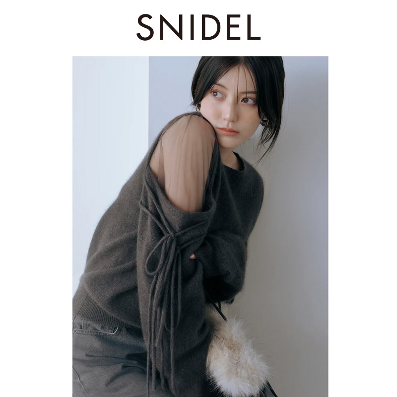 露肩系带针织衫 毛衣SWNT255016 圆领薄纱拼接袖 SNIDEL2025秋冬新品