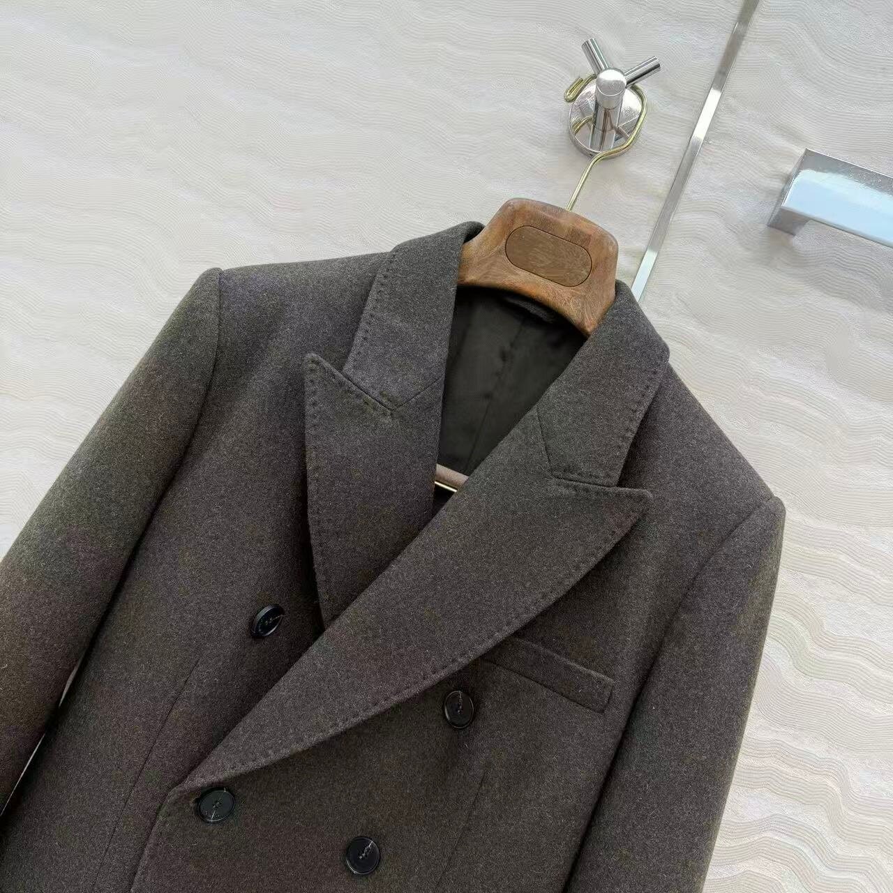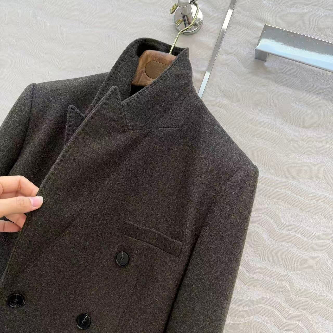 深圳南油手工珠边拱工艺双排扣收腰版 外套女 型羊绒羊毛混纺西装由