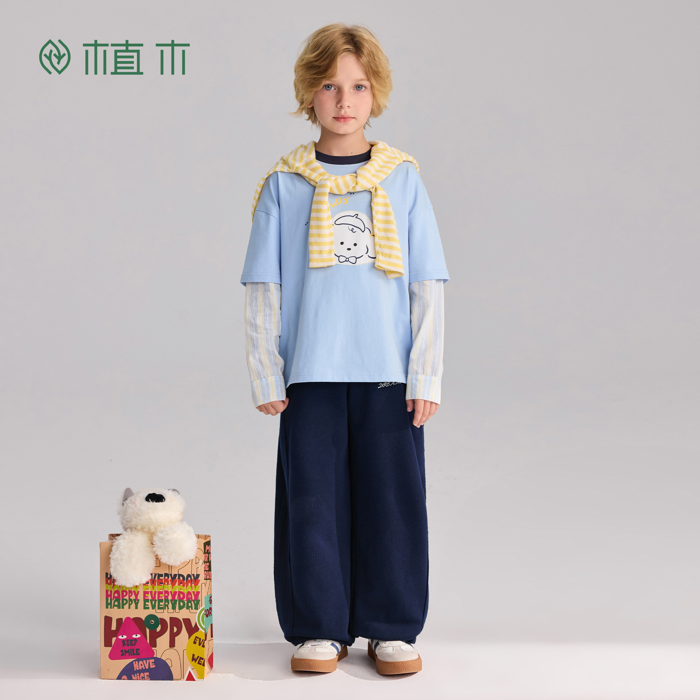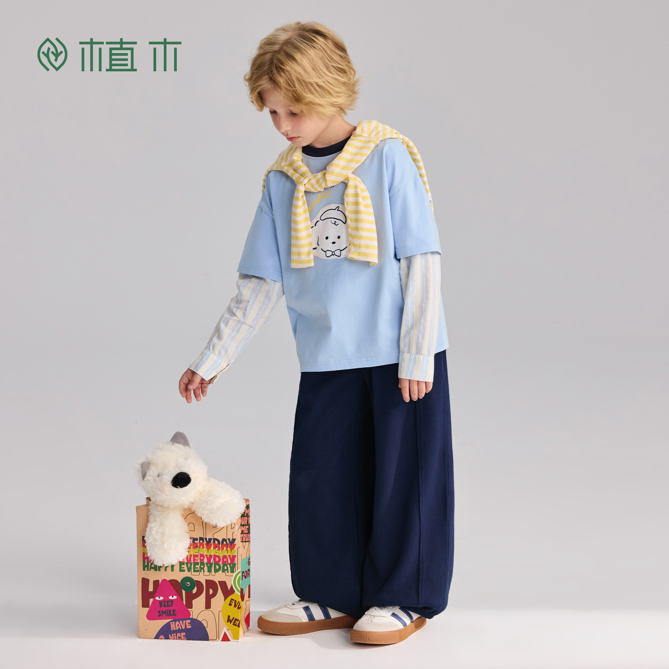 子儿童华夫格直筒裤 男童裤 万搭选手 新款 童装 休闲2026春季 植木