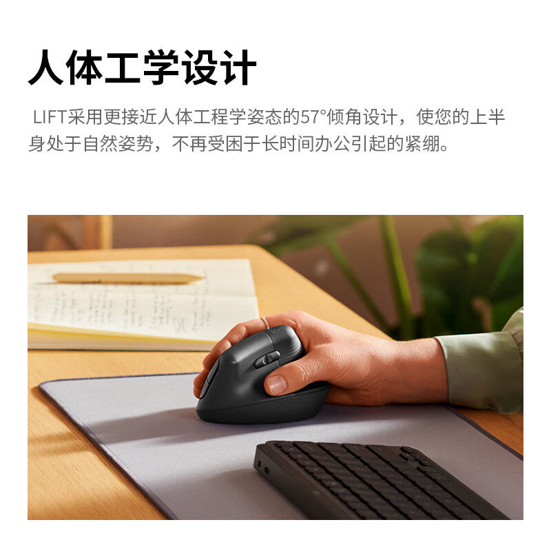 电脑办公静音笔记本 罗技人体工学系列LIFT蓝牙垂直无线鼠标商用版由