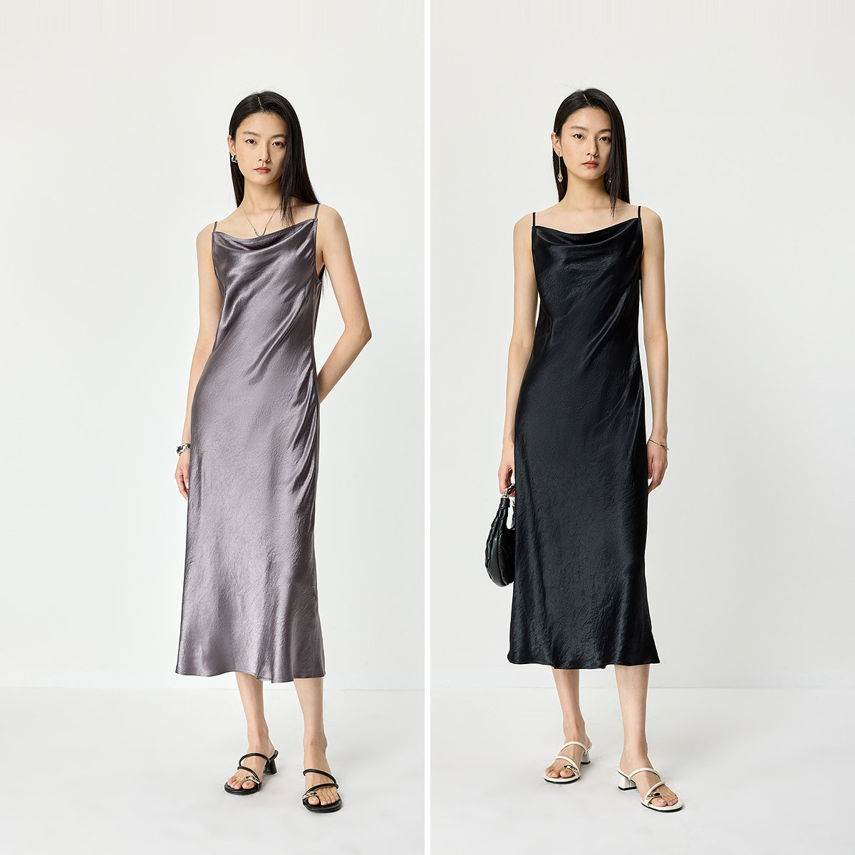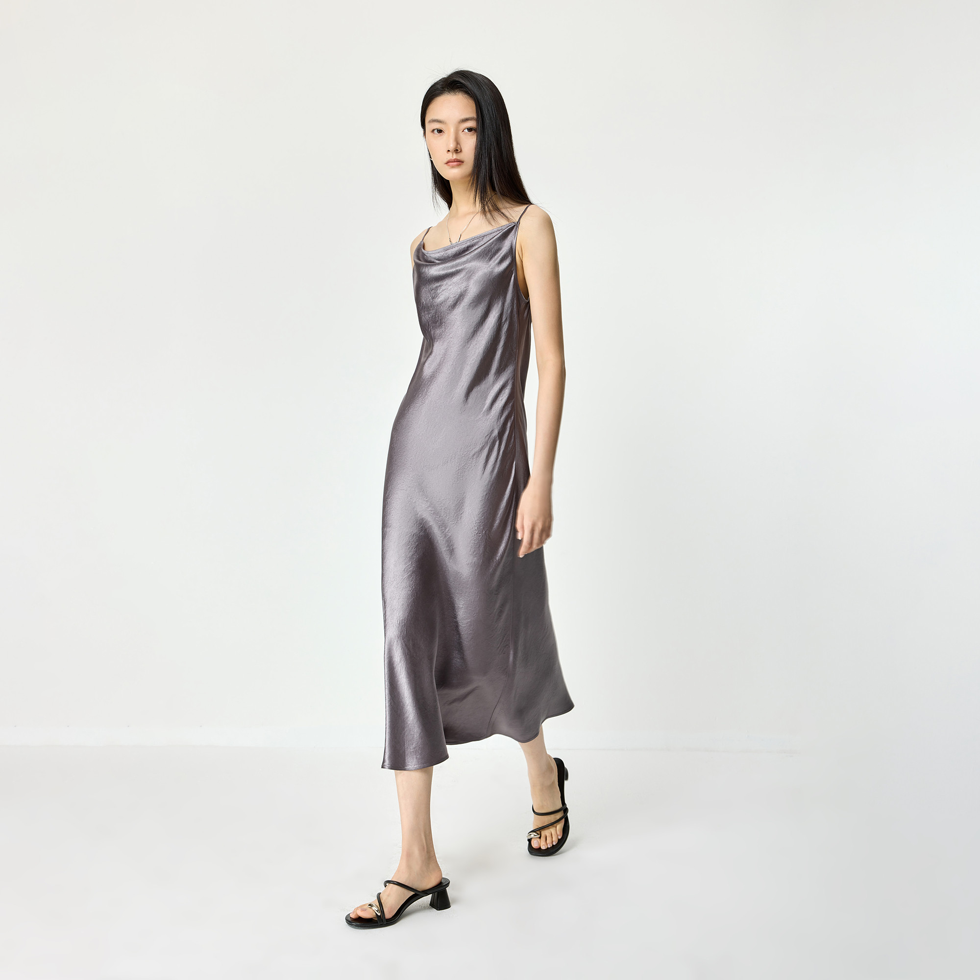 微光法式 荡领斜裁气质通勤吊带连衣裙 女装 100%醋酸LILY2026春新款由