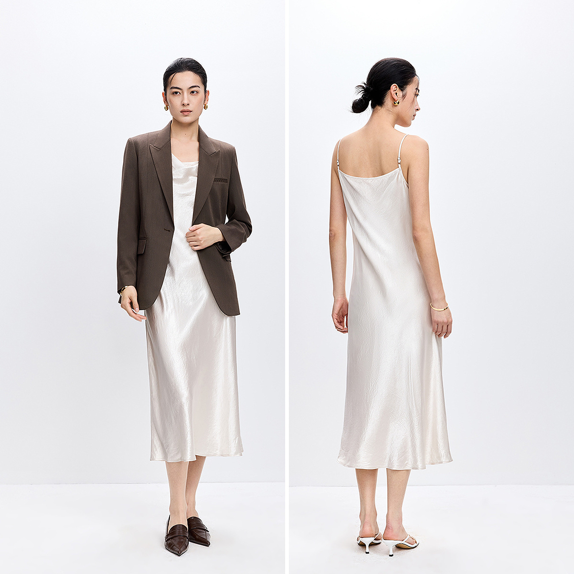 为您提供商品微光法式 荡领斜裁气质通勤吊带连衣裙 女装 100%醋酸LILY2026春新款的详细介绍,