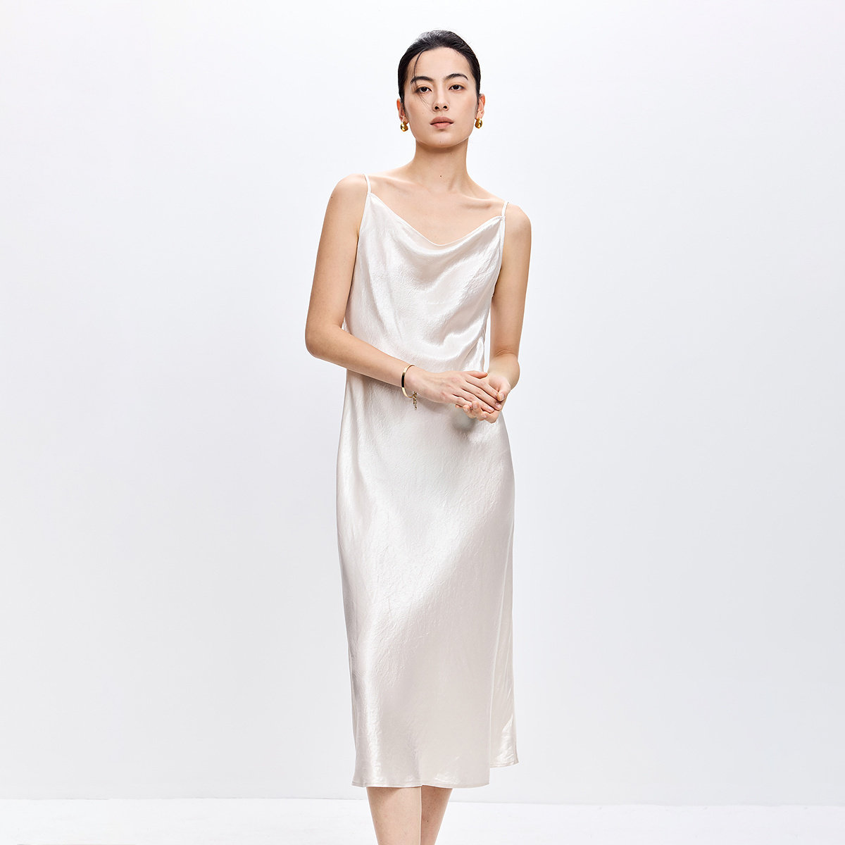微光法式 荡领斜裁气质通勤吊带连衣裙 女装 100%醋酸LILY2026春新款