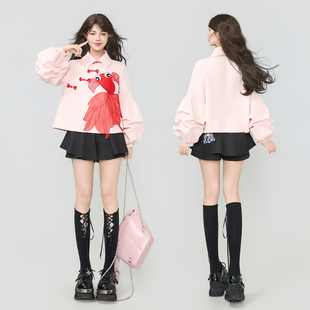 裙2026夏季 KEIKO 卡通刺绣裤 裙半身裙裤 松紧高腰宽松显瘦休闲短裤