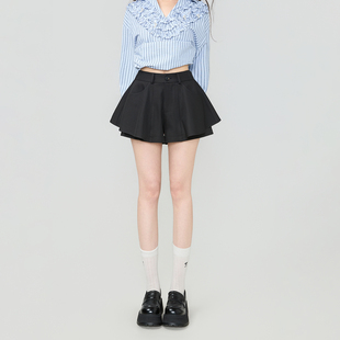 女春季 FASC自制 高腰西装 白色短裤 小个子 打底外穿黑色显瘦热裤