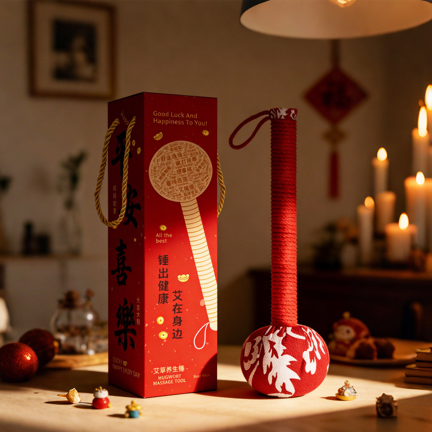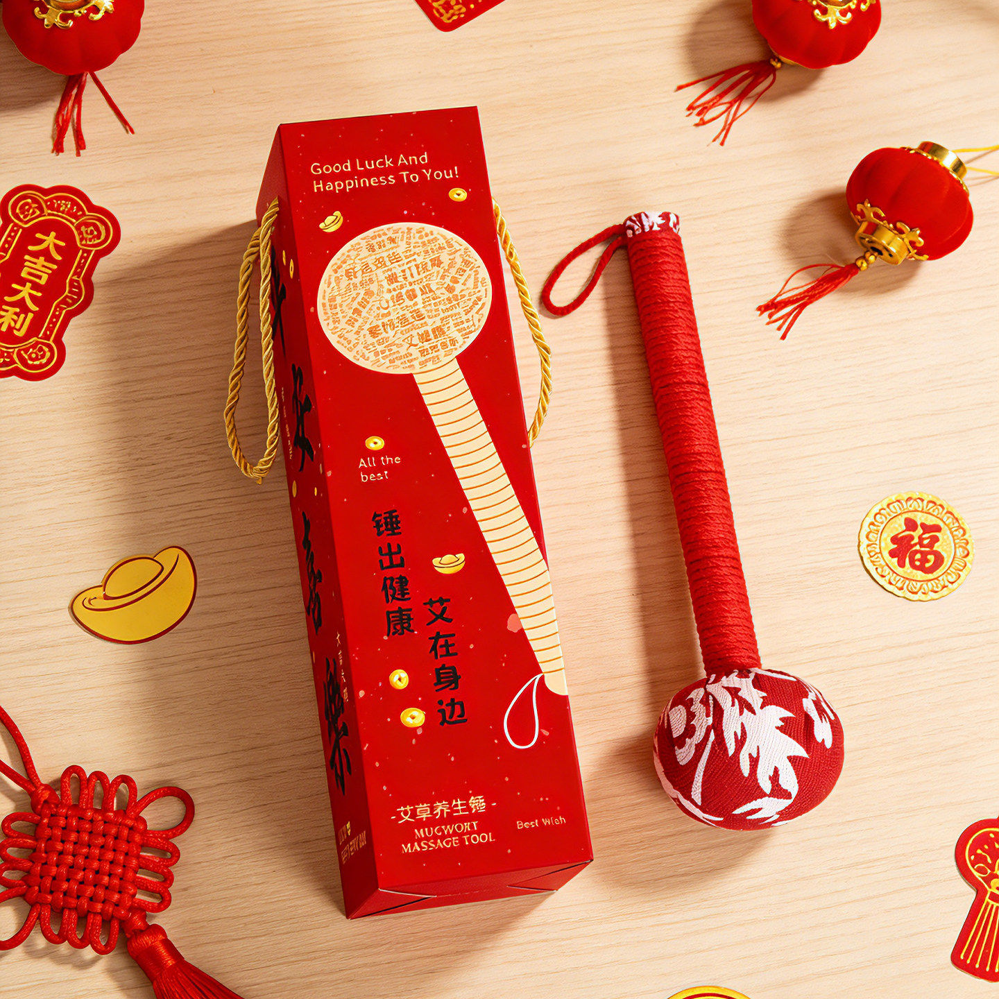 新款 敲打经络捶打肩颈实用品妇女神礼物 高档养生艾草按摩锤礼盒款