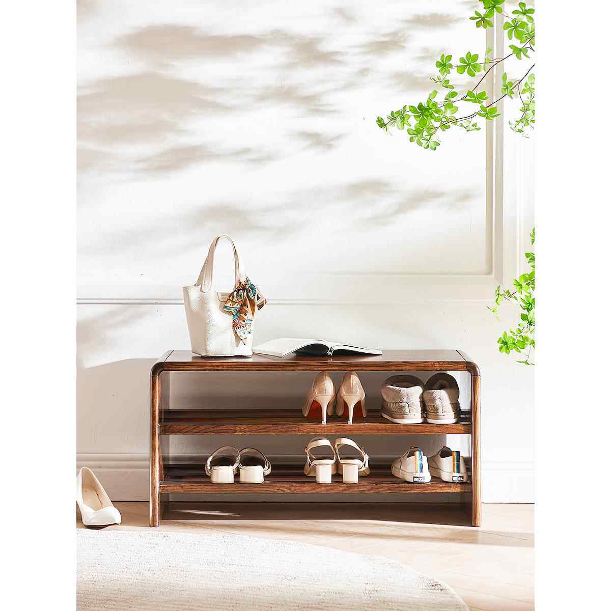 全实木鞋 凳一体可坐换鞋 架现代简易门口收纳简约整装 实木凳 架换鞋