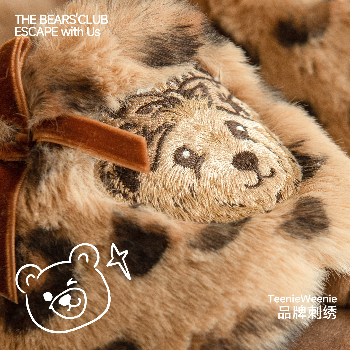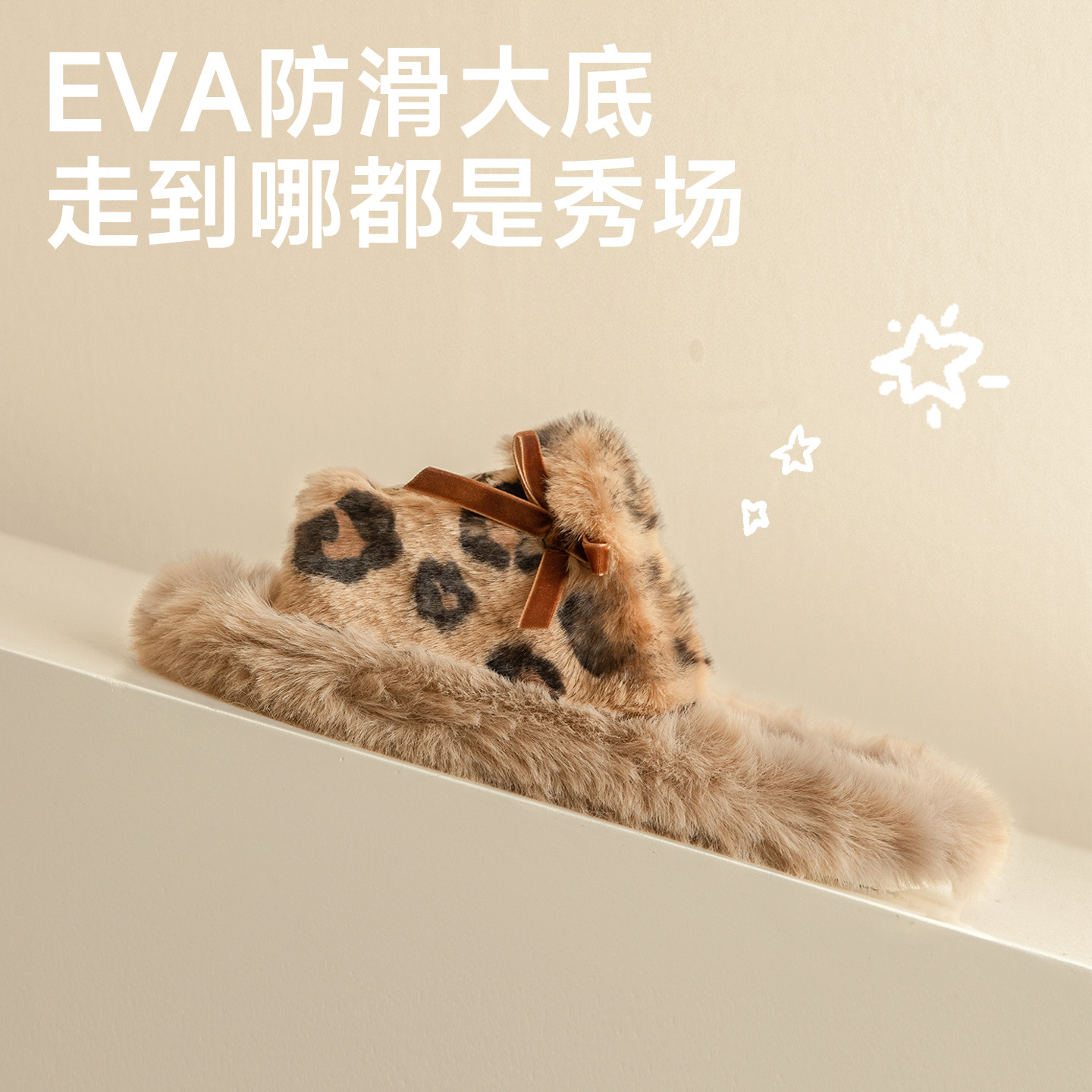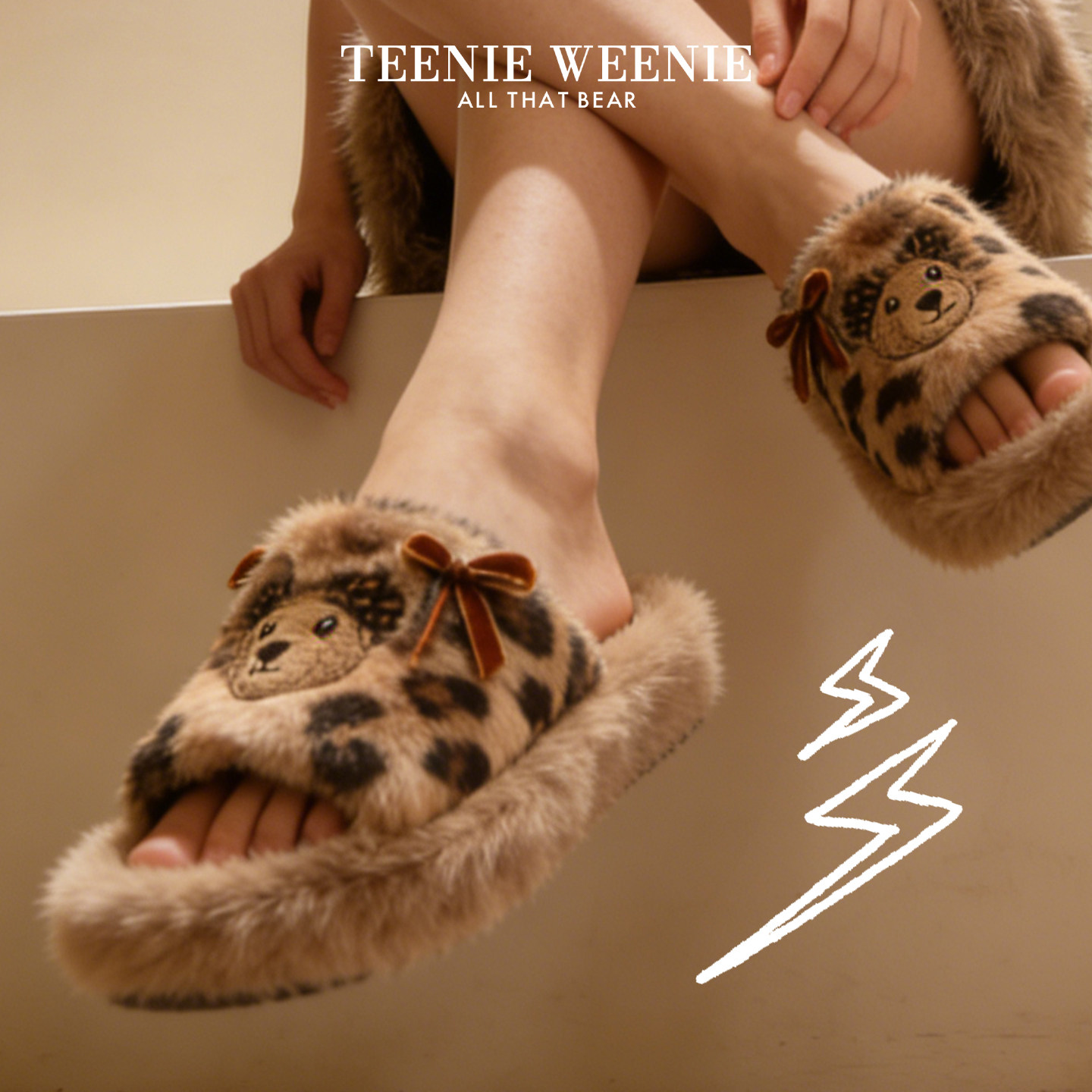 女款 豹纹毛毛拖一字拖 居家室内毛绒棉拖冬季 TeenieWeenie保暖拖鞋