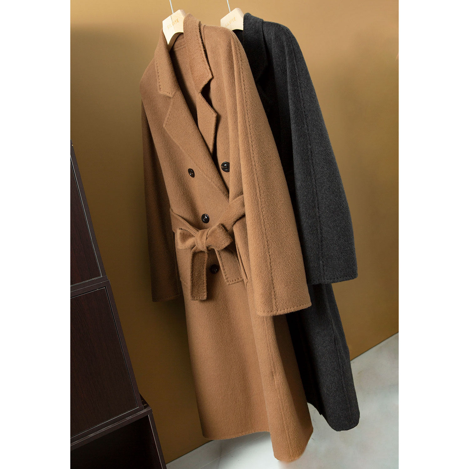 亏清 骆驼绒 高支超细羊毛双面呢大衣双排扣毛呢西装 外套 M家同款