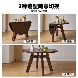 家逸实木折叠圆桌小户型餐桌椅家用圆形可折叠桌中古风吃饭圆桌子由