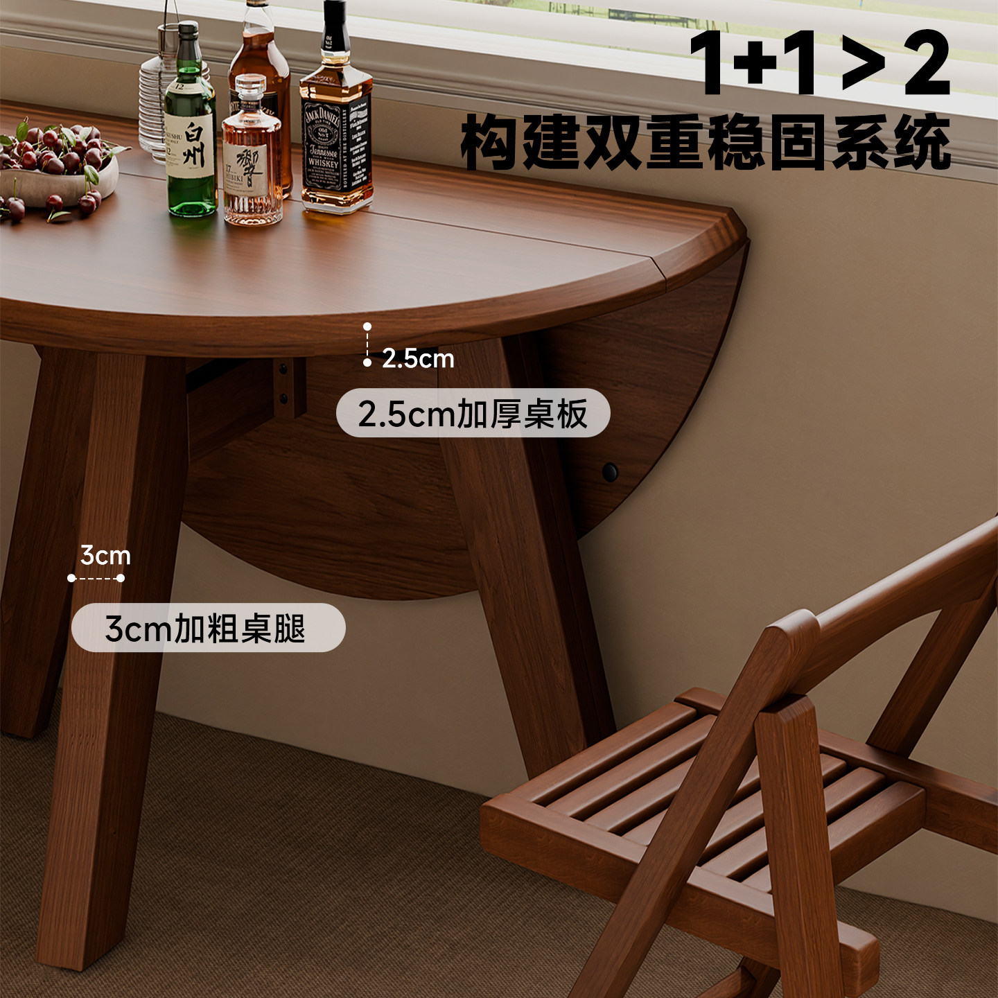 为您提供商品家逸实木折叠圆桌小户型餐桌椅家用圆形可折叠桌中古风吃饭圆桌子的详细介绍,