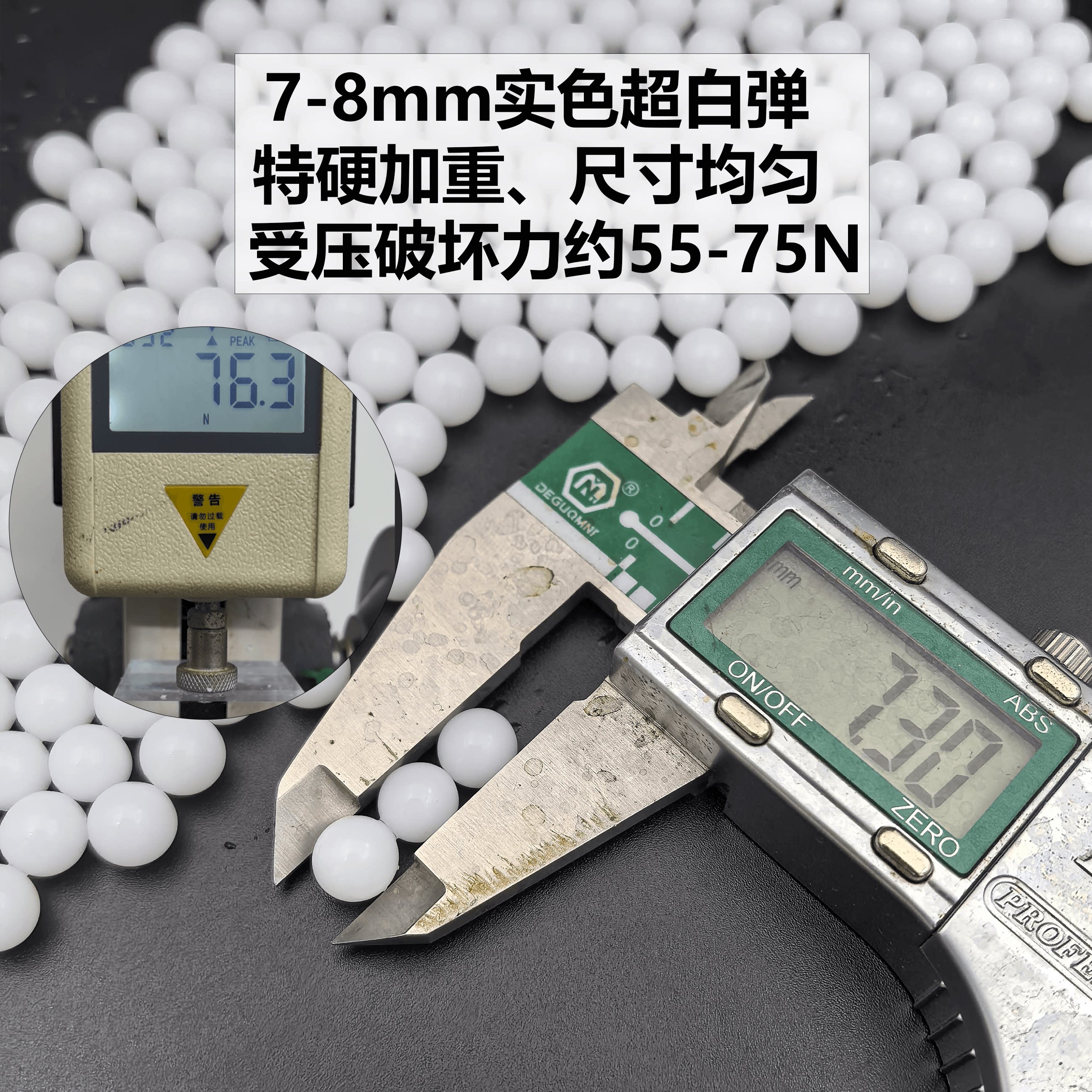 8mm均匀加重硬水弹 竞技下场超级纯白弹磨砂抗压超白乳白狮子头7由