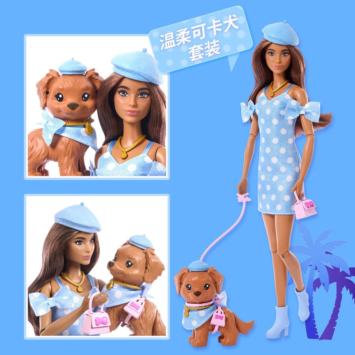 送礼玩具 芭比娃娃Barbie绒绒好时光系列之活力贵宾犬女孩时尚